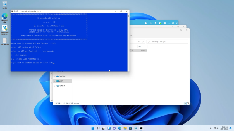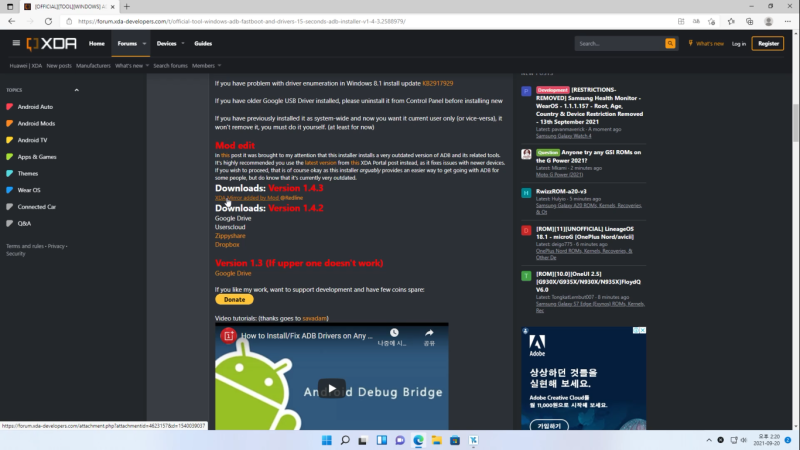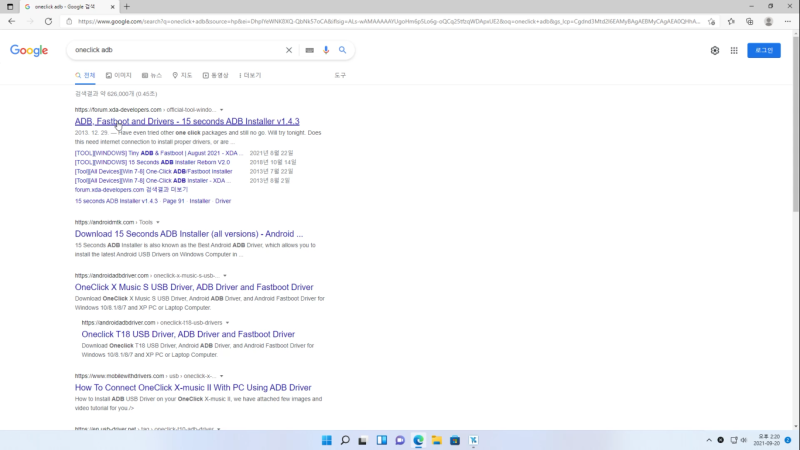 구글에 oneclick adb를 검색해주세요.(다른방식으로 adb 설치하셔도 상관 없습니다.)
