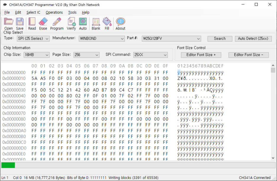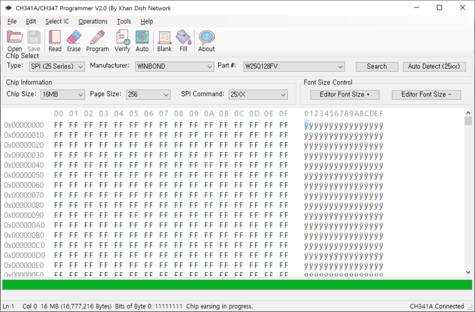 상단의 Erase를 눌러서 칩에 저장된 바이오스를 지워주고요,