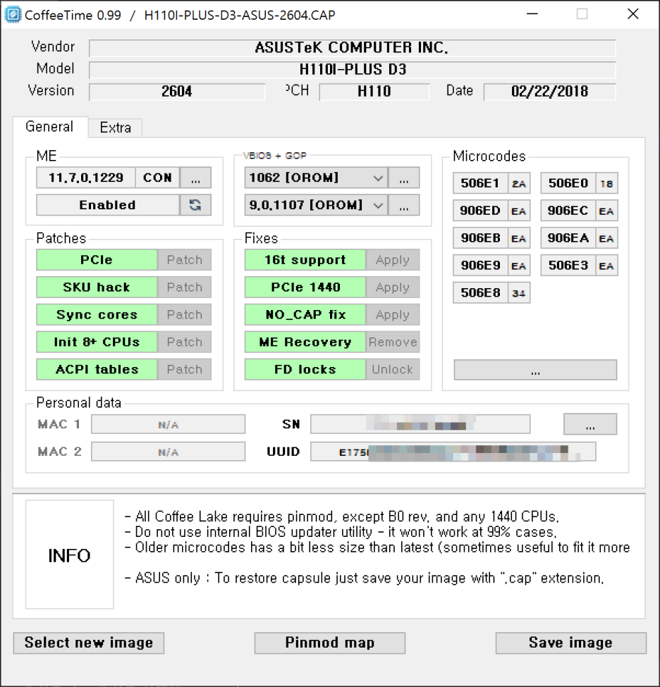 ME 부분과 VBIOS + GOP 부분에서 ... 부분을 클릭 후 하단의 Patch 버튼 클릭,