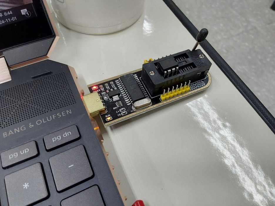 우선 준비물은 롬라이터(CH341A), 작업을 진행할 메인보드의 최신 바이오스, 윈도우가 설치된 다른 PC, 그리고 메인보드의 바이오스 칩이 되겠습니다.