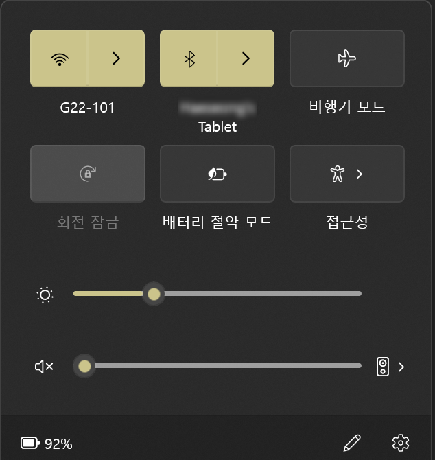 역시나... 게다가 아이콘도 일부 윈도우 아이콘으로 바뀐걸 볼수 있습니다. 비행기모드라던지, 배터리 절약모드.. 등등