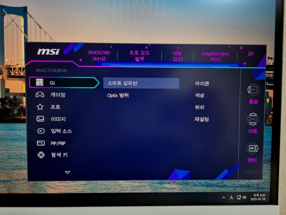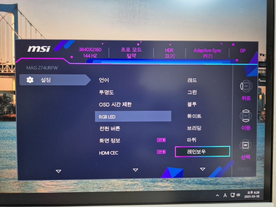 OSD에서 이렇게 설정할 수 있는데요,