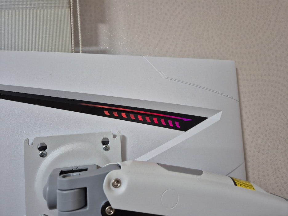 저는 어차피 모니터 후면 볼 일이 없어서 그냥 꺼뒀는데, 이런 RGB 감성 좋아하시는 분이라면 작아서 아쉽다 하실 수도 있을 것 같기도 하고, 절제되어서 좋다 하실 수도 있을 것 같기도 하네요. 취향의 영역인 것 같아요.