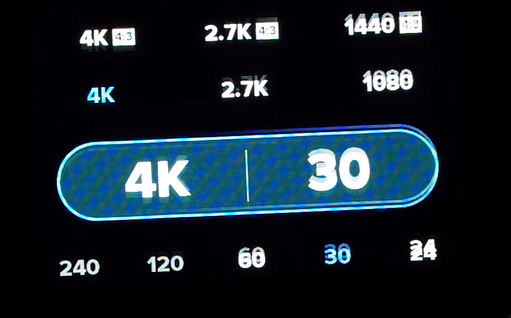 이렇게 1080, 2.7K(2704*1520), 4K 세가지로 설정할 수 있습니다. 4:3 비율로도 설정할 수 있고요.