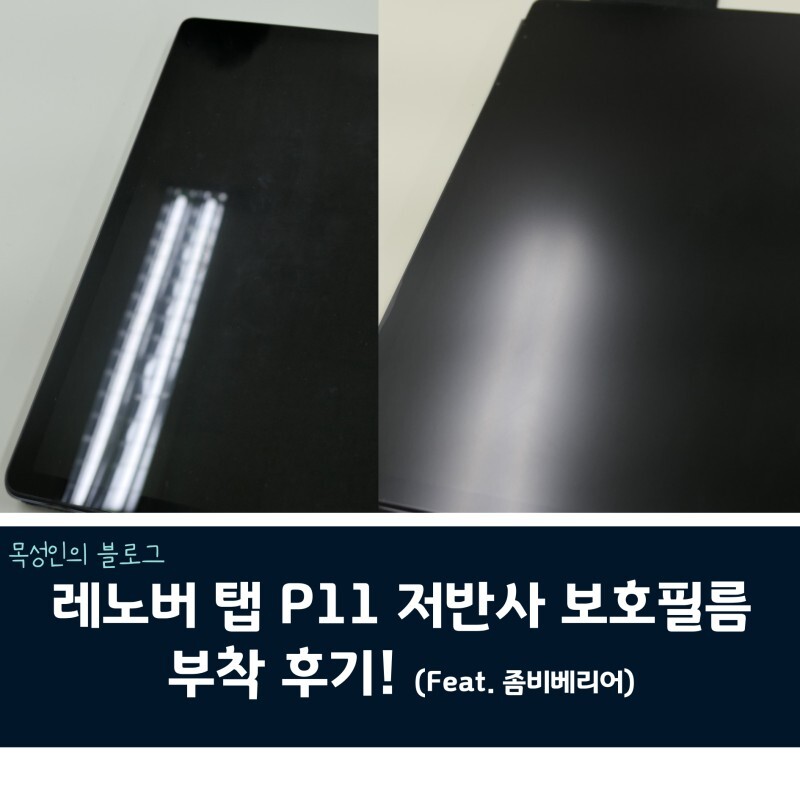 하지만, 쨍한 화질이 마음에 들어서 그냥 참고 쌩 액정 상태로 쓰다가, 최근에 다른 태블릿이 액정이 박살이 나는 사고가 있어서, 바로 P11의 저반사 보호필름까지 구매하였습니다.